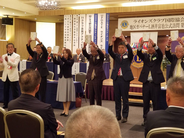 332-D地区第2R第1Zの6クラブ、第2Zの5クラブの計11クラブ227名が参加しての合同例会となりました。