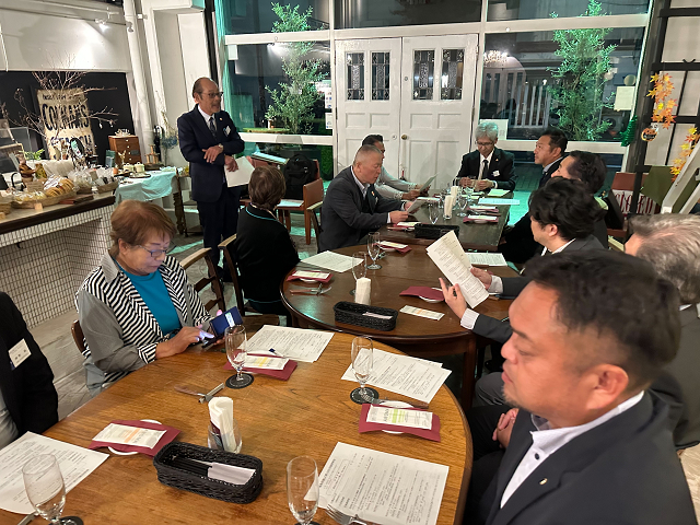 第1222回例会を開催しました。 2025/10/21 令和7年10月21日(火)、福島市森合の ANTIQUE さんにて第1222回振替例会を開催しました。 17名の参加者となり、例会後の懇親会ではANTIQUEさんのおいしい料理をごちそうになりました。 10月から11月にかけては、奉仕活動を中心にクラブ活動が増えていきます。 会員の皆様の参加をお待ちしております。