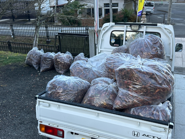既に紅葉はほぼ終わり、落葉した葉を集めて軽トラックに山盛りいっぱいの量を撤去できました。